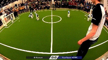 中型组比赛由轮式机器人直接对抗人,也是最符合RoboCup诞生初衷的一种比赛。