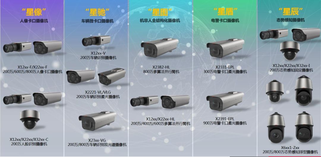 最凶猛的华为,则在2018年9月,一口气发布了基于“软件定义摄像机”概念的多款“星”系列摄像机,相较传统产品,“星”系列针对不同场景需求进行了硬件的侧重优化以更好落地,比如高感光镜头用于日夜全彩成像,全局快门侧重于高清卡口高速目标捕捉。
