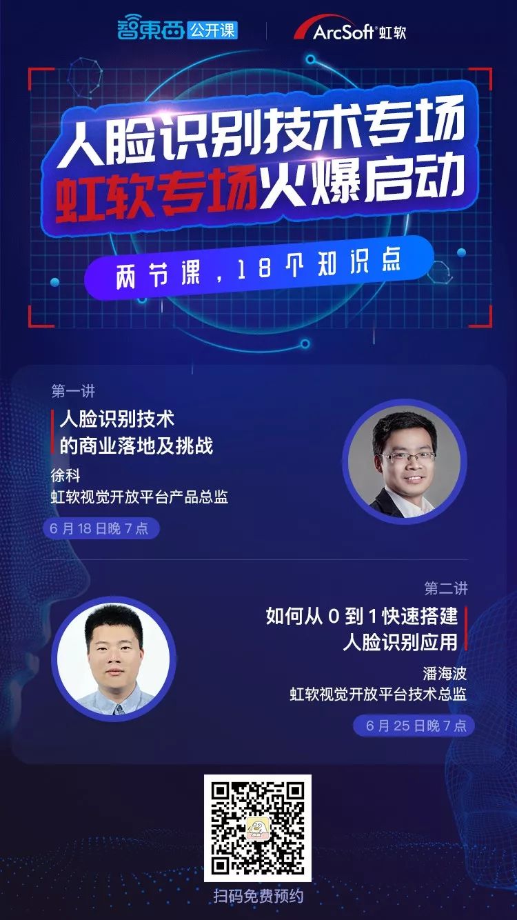 6月,人脸识别技术公开课虹软专场重磅启动!扫码预约,免费听课~