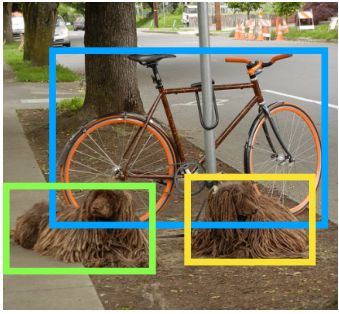 现在我想先介绍为什么要针对多方向的文本检测做特定的研究。对于普通目标检测,我们并不需要对其做所谓的多方向目标检测,比如下面这个检测任务,我们直接把单车和狗的位置找出来即可。