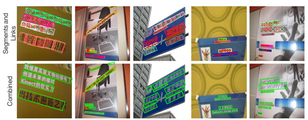 我们把图片的关键部位放大看看细节:首先每个segment是有一定的重合区域的,然后每两个segment连接的部位是两个segment的中心点。每一个segment和link仅依靠局部图像的纹理信息即可完成检测,而无需整张图像的信息。