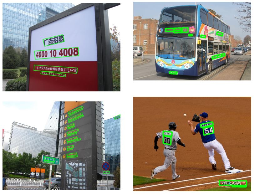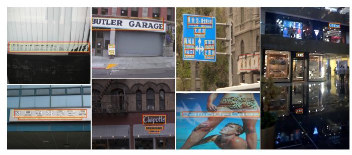 下面看看EAST文本检测的效果,注意观察一些带放射变换or透视变换的文本行的检测效果。
