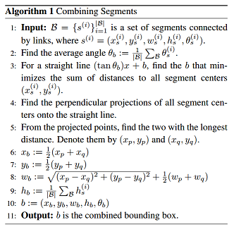 读到这里我们已经知道如何获取segment和相应的link了,那接下来要做的就是怎么把这些link和segment合并成一个完整的文本行。先贴一下论文中使用到的合并算法: