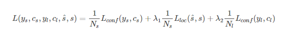 SegLink所使用的目标函数由三个部分构成,是否是text的二类分类的softmax损失,box的smooth L1 regression损失,是否link的二类的softmax损失。λ1和λ2控制权重,最后都设为1。