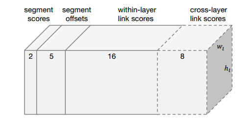 同层(within-layer)的每个segment的link的分数,表示该方向有link还是没link(2分类问题),而一个segment有八邻域所以有八个方向,参数一共有2×8=16