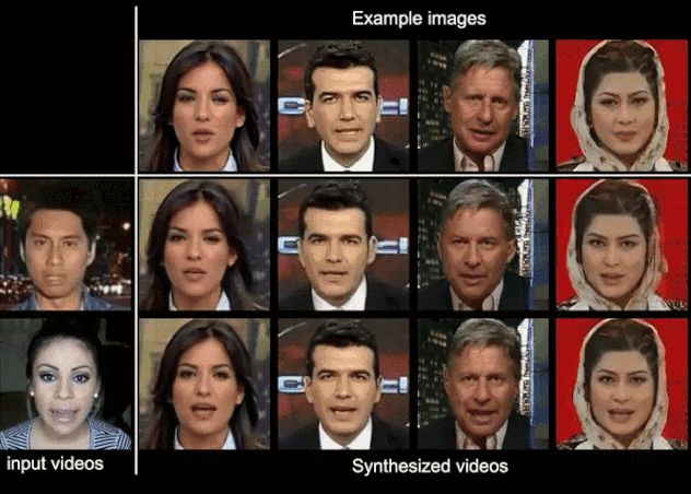 下图 6 展示了在合成人脸时使用不同示例图像的结果。英伟达的方法可以在捕捉到输入视频动作的同时完整保留示例人物特征。