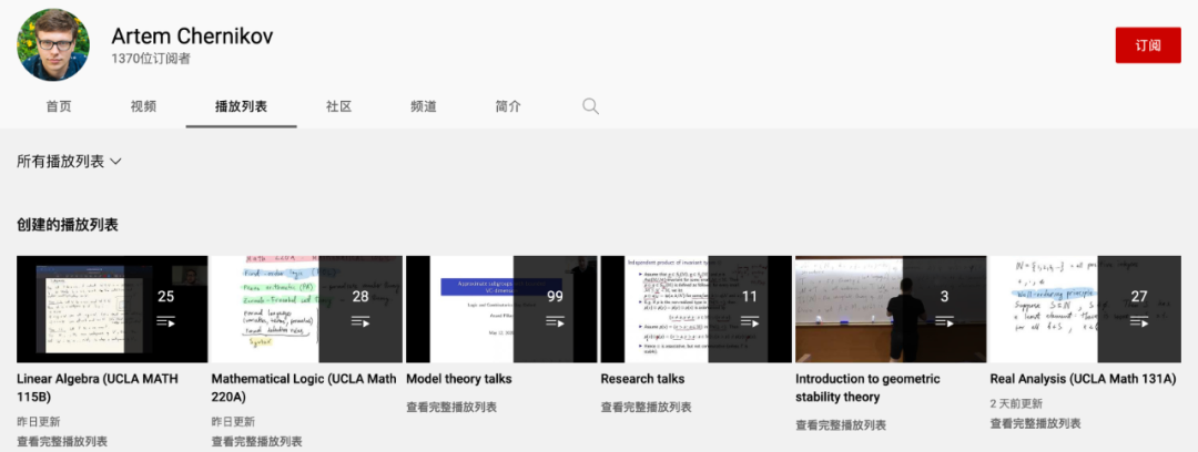 目前,Artem Chernikov 也在自己的 Youtube 频道上传了其他课程的视频。