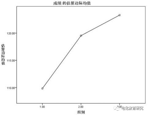 以学习行为水平高中低分组(分别对应图1中组别1、2、3)为自变量,成绩为因变量,进行方差分析。结果表明:三组学习者在成绩上存在显著性差异(F=88.046,P=0.000),表现为低分组成绩显著低于中分组。图1可以清晰地看出这一趋势,随着学习行为水平的提升,成绩逐步上升,随着组别的增加,递增幅度呈下降态势。