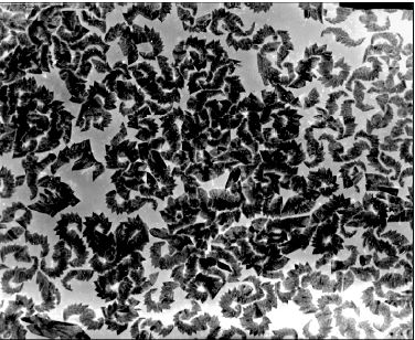 图5 C60- TNCQ 枝条状图案TEM照片(分形结构沿缺陷方向排列. 沉积条件:Ts=70℃,其余条件与图3相同. 照片尺寸:44.7x33.9μm2 )