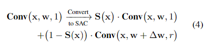 SAC的计算过程可以用上面的式子来表示,其中x为输入,w为权重,r为空洞卷积的空洞率rate,这也是SAC的超参数。