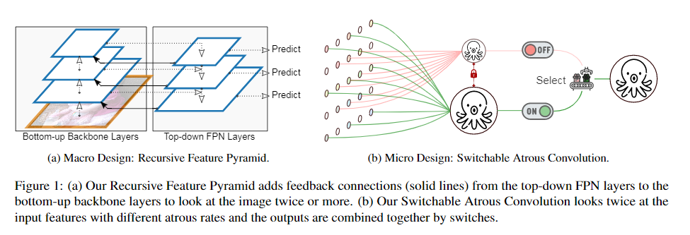 Recursive Structure + Bottom-up Backbone Layers + Top-down FPN Layers + ASPP as the Connecting Module