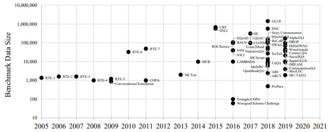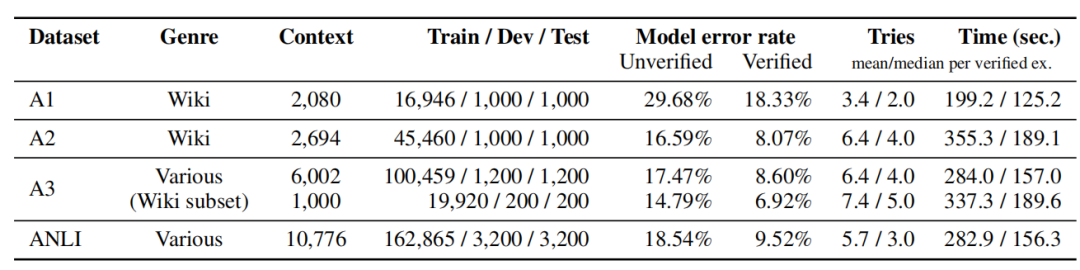 Yixin Nie的团队提出了一种新的数据集,称为ANLI(Adversarial NLI)[8]。这个数据集的基本思想是基于与模型进行对抗,从而迭代更新数据集。将SOTA模型应用在这个数据集上,也能够看出该数据集十分具有挑战性。