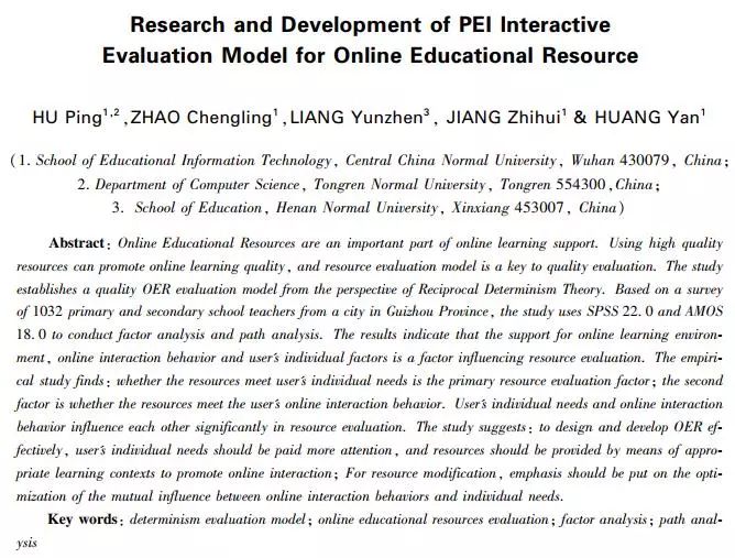 关键词:交互评价模型;在线教育资源评价;因子分析;路径分析