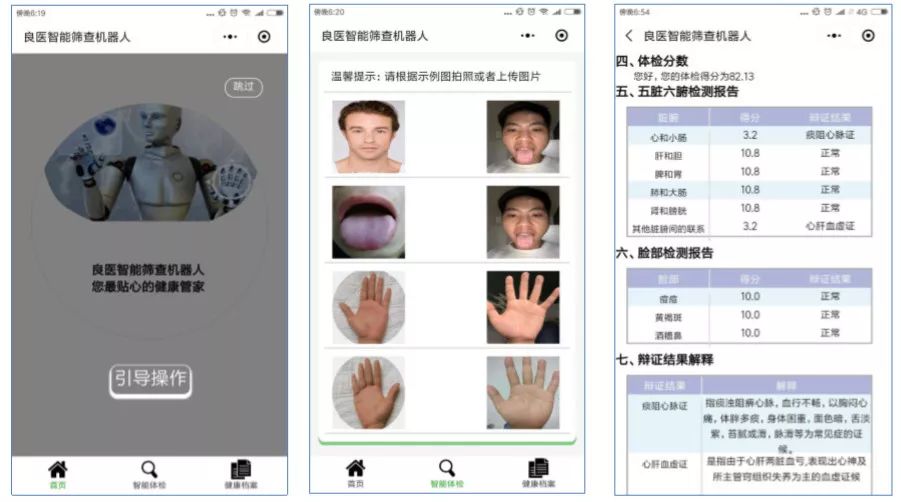 「良医」的智能舌诊、智能问诊以及智能脉诊均为自主研发。其人工智能是基于800万医案数据条、500万舌诊病例搭建的。此前,该公司曾做过一次准确率测试,请1000名患者同时被「良医」中医AI机器人和100名中医医师问诊,对比机器和人工的诊断误差,得到机器开药准确率为95%。「良医」智能手诊的种子客户包括国家游泳中心(智能体检舱)和慧虎手诊。