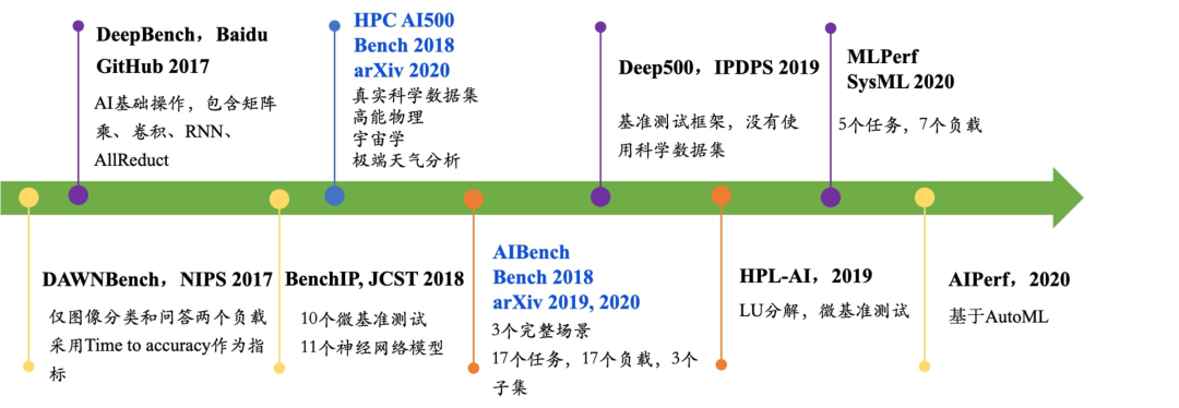 从论文提交以及 ArXiv 上公开的时间来看,AIBench 等标准均早于 MLPerf。