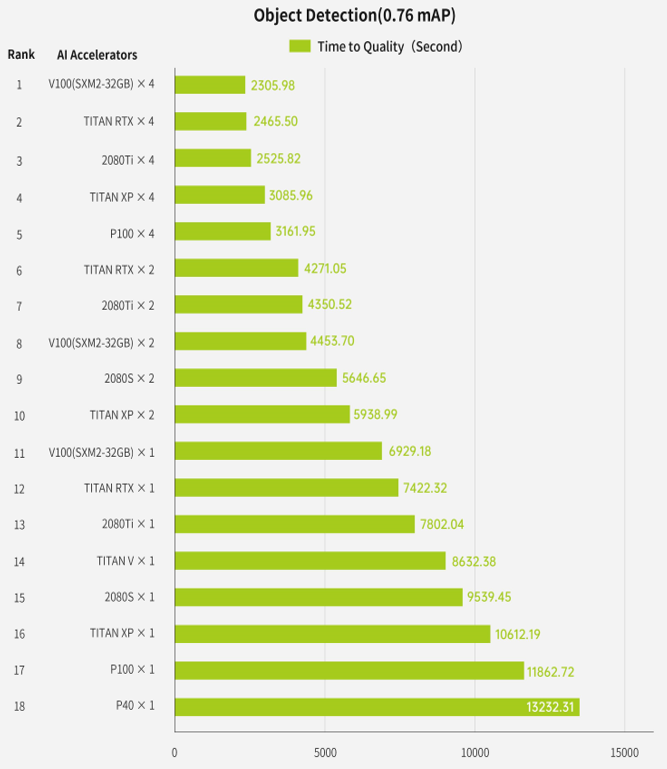 除了VFLOPS,HPC AI500同时还使用训练人工智能模型所需时间和相应模型所能达到的精度作为辅助指标。