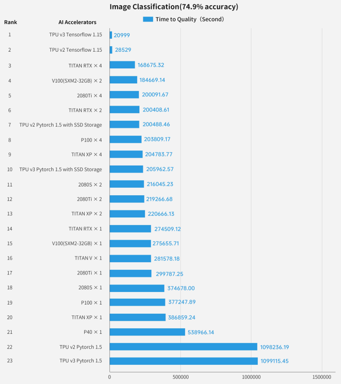 图:智能芯片排行榜,使用学习排序负载测试