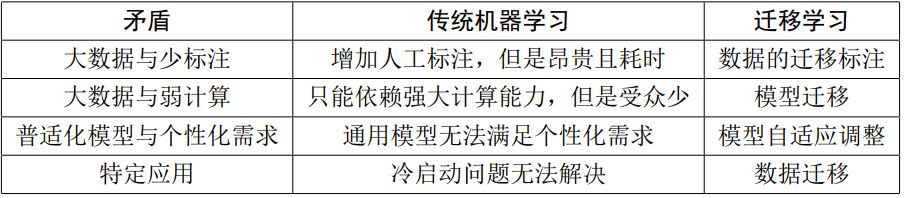 迁移学习属于机器学习的一类,但它在如下几个方面有别于传统的机器学习 (表 2):