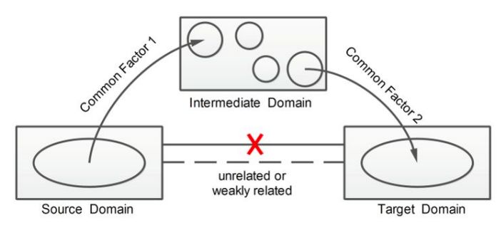 随着研究的深入,已经有新的研究成果在逐渐克服负迁移的影响。杨强教授团队 2015 在 数据挖掘领域顶级会议 KDD 上发表了传递迁移学习文章 Transitive transfer learning [Tan et al., 2015],提出了传递迁移学习的思想。传统迁移学习就好比是踩着一块石头过河,传递迁移学习就好比是踩着连续的两块石头。