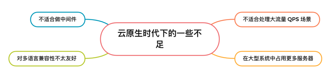 其次,Java 语言需要更多的资源。一个架构的打造如果不考虑成本,很多问题都很好解决,但在云原生时代下,所有的资源计算变得越来越细、越来越颗粒化。Java 在运作时需要消耗大量的资源,由于 Java 分量重和需要重启的基础特性,因此在高 QPS 或者业务连续性要求较高的场景下,该语言会更容易出现问题。