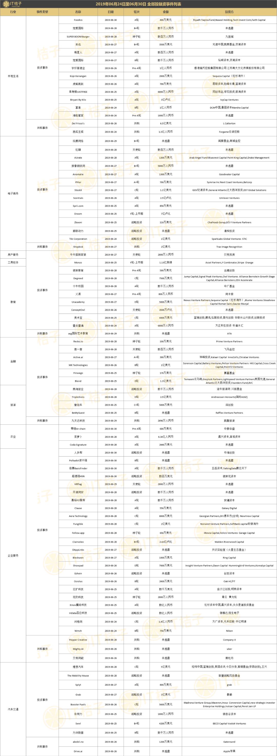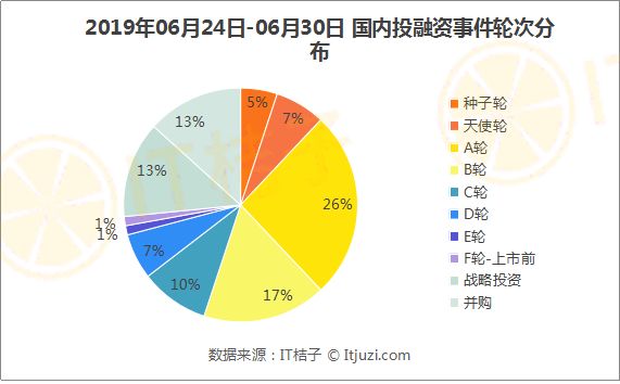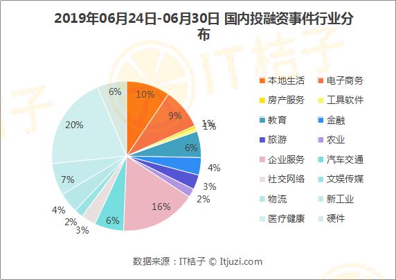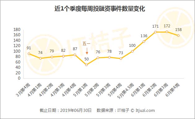 总体来看,六月的投资市场较五月活跃。上周发生了 158 起投融资并购事件,较上上周事件数量有所下降,投资节奏有放缓趋势。