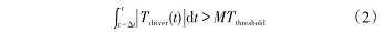 式中,T_driver(t) 为驾驶员转向力矩;MT_threshold 为驾驶员转向力矩积分阈值。