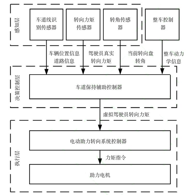 LKA 系统可分为感知层、决策控制层和执行层三部分 [11],如图 1 所示:
