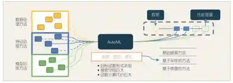 (3) 函数值的每次计算大多涉及数据预处理、特征处理、模型训练的全流程,函数值的计算代价极其昂贵。为了解决这些问题,采用的核心技术是基础搜索方法、基于采样的方法和基于梯度的方法。