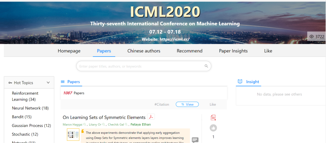想要查看更多本次会议的详细信息,可以移步 AMiner 会议智图开放平台 ICML 2020 专题全析图,其内容包括论文、作者、华人学者、一作华人学生、论文 PPT 和视频等多维分析服务,是参会学者的会议智能助理。