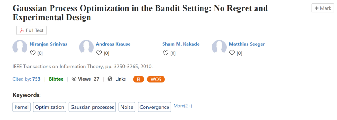 作者:Niranjan Srinivas, Andreas Krause, Sham Kakade, Matthias Seeger