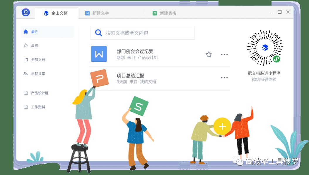 WPS 2019 是最新版的WPS,它可以创建文字,表格,便签,流程图功能,把幻灯片功能给去掉了。
