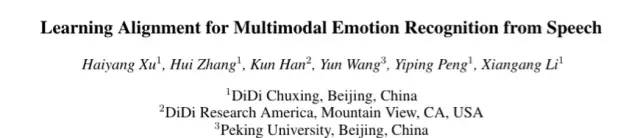 在本篇论文中,滴滴提出基于多模态对齐的语音情感识别的模型。在语音情感识别的公开数据集IEMOCAP取得了当前最好的性能。