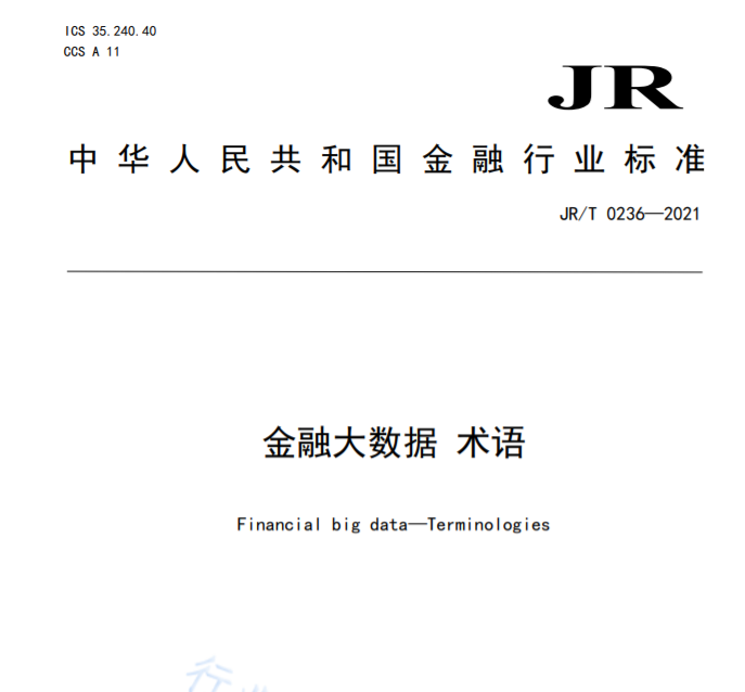 中国人民银行正式发布《金融大数据术语》(JR/T 0236—2021)金融行业标准。本标准结合我国金融应用特点,归纳描述了金融大数据相关基础概念、参考体系、生命周期、治理与管理以及支撑运行环境等方面的常用术语,为增强金融数据信息传导、促进相关方快速形成共识等方面提供有效支撑,有助于统一金融领域大数据相关概念,促进大数据在金融行业的应用。