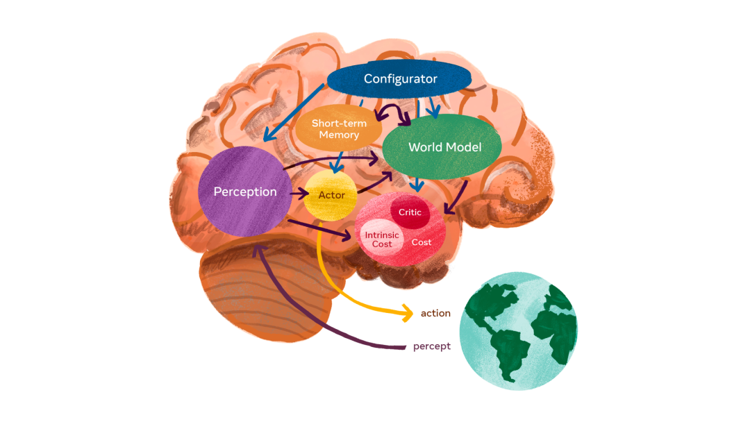 而对于现在的人工智能来说,最重要的挑战之一就是设计学习范式和架构,使起能够以自监督的方式学习世界模型,然后用这些模型进行预测、推理和计划。