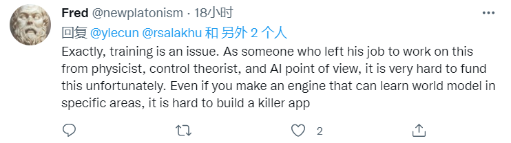 他表示,「确实,训练是个问题。对于一个离开自己原来的工作,去搞世界模型的人来说,他们可能会从物理学家、控制理论专家和人工智能的角度去构思,这样的话这些视角很难帮他们做什么...哪怕你搭建了一个机器,也学了一些特定领域的世界模型,你还是很难做出一款现象级的软件。」