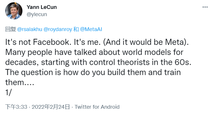 被推上风口浪尖的LeCun,不得不亲自下场:这和Facebook没啥关系,是我自己提出的,况且应该是Meta。