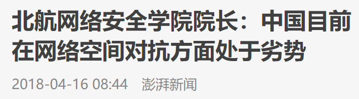 国内著名的网络安全专家、北京航空航天大学网络安全学院院长刘建伟教授在接受媒体采访时表示,中国目前在网络空间对抗方面处于劣势。