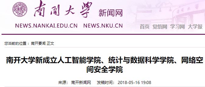 据南开大学新闻网报道,5月16日南开大学网络空间安全学院成立,报道指出,南开大学成立“网络空间安全学院”,为服务网络强国战略,培养高水平网络安全人才。