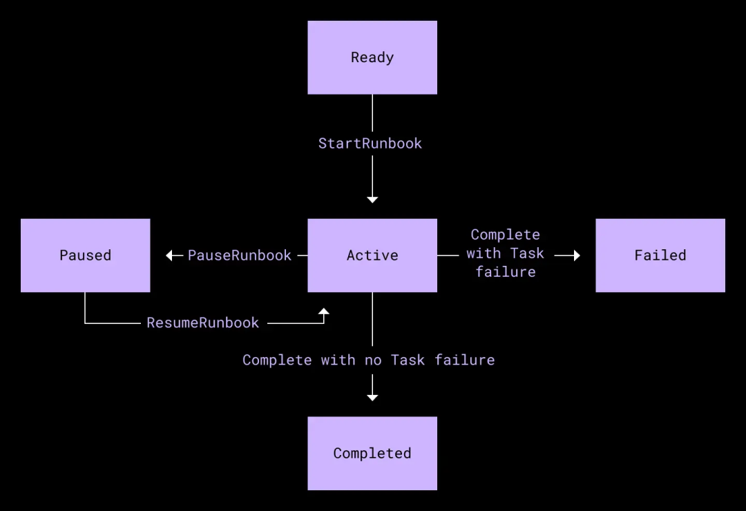 Runbook 状态机。一个 Runbook 由多个任务组成。