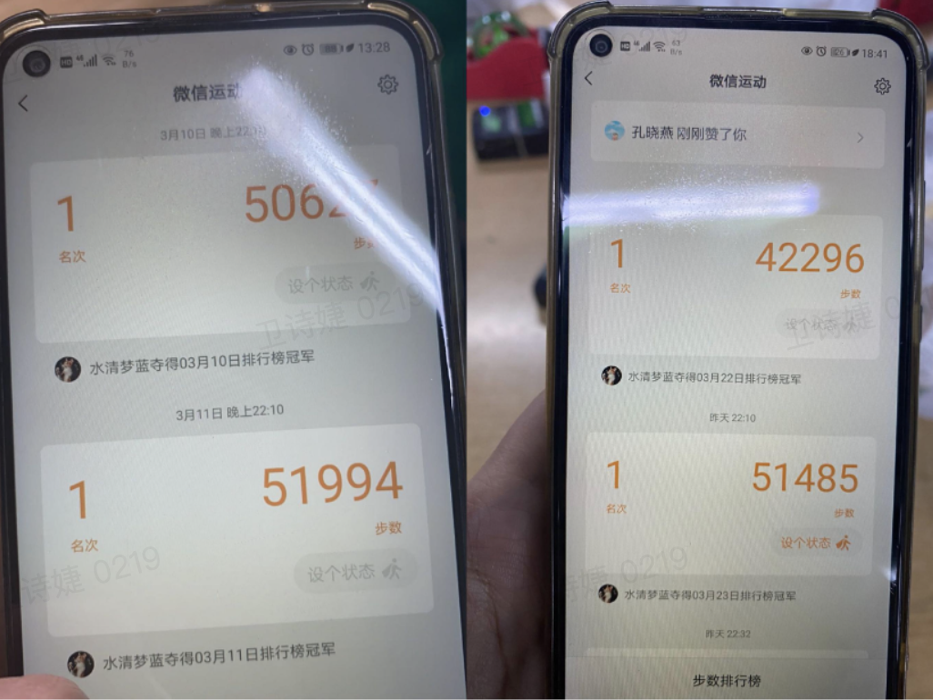 一天内,许敏要完成 400 多个订单的打包,在不到 500 平方米的前置仓中,几天以来,她每天的微信步数都达到了惊人的 40000 至 50000 步,持续占据朋友圈运动榜的第一名。