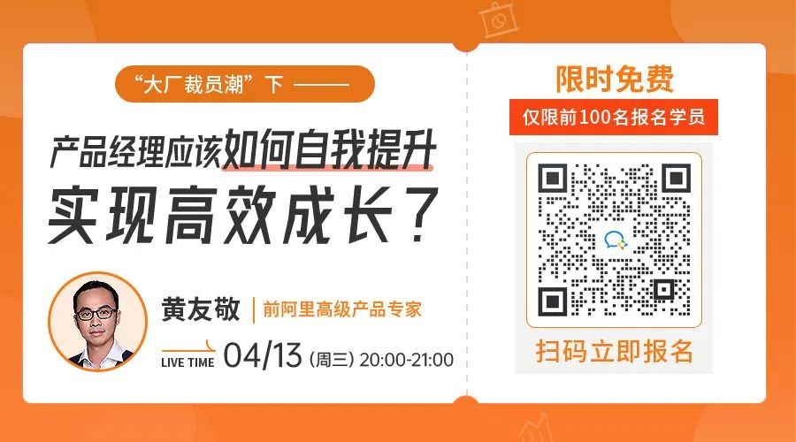 就在今晚!!!免费学习的机会来了!前阿里高级产品专家@黄友敬老师 带你拆解产品经理9大必备核心能力,4个实用方法帮你快速提升产品能力,让你高效成长!