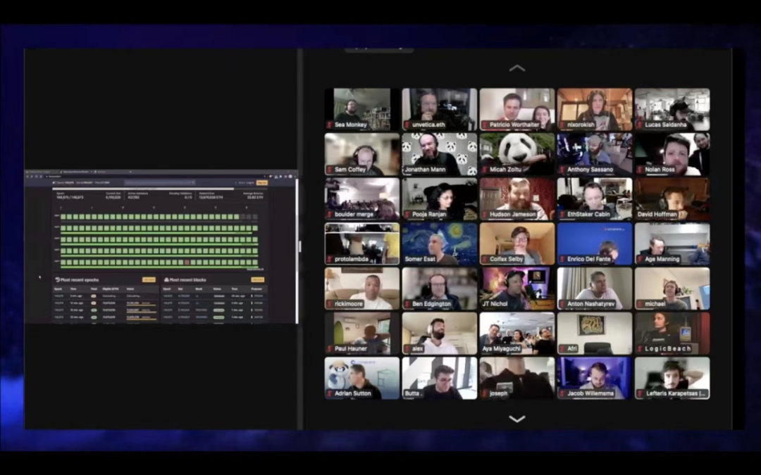 当天,肤色各异的人们涌入 ETHGlobal 直播间,等待过程中,有人唱歌,有人跳舞,更多的人在聊天界面不断猜测着几点能完成合并。