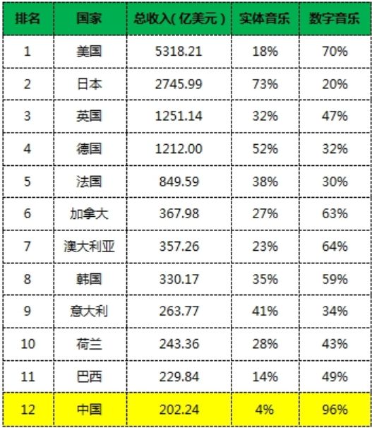 如今中国唱片公司收入可以排到世界的第十二名,而且和排名上很不同的一点就是,我们数字音乐收入占有比例非常非常高!