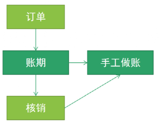 可以看到首先由客户订单接入,根据订单金额计入客户账期,每月根据客户账期手工线下做账生成对账单发送至客户,再生成应收款,并由客户打款后进行账单核销,这其中所有部分均为线下操作。