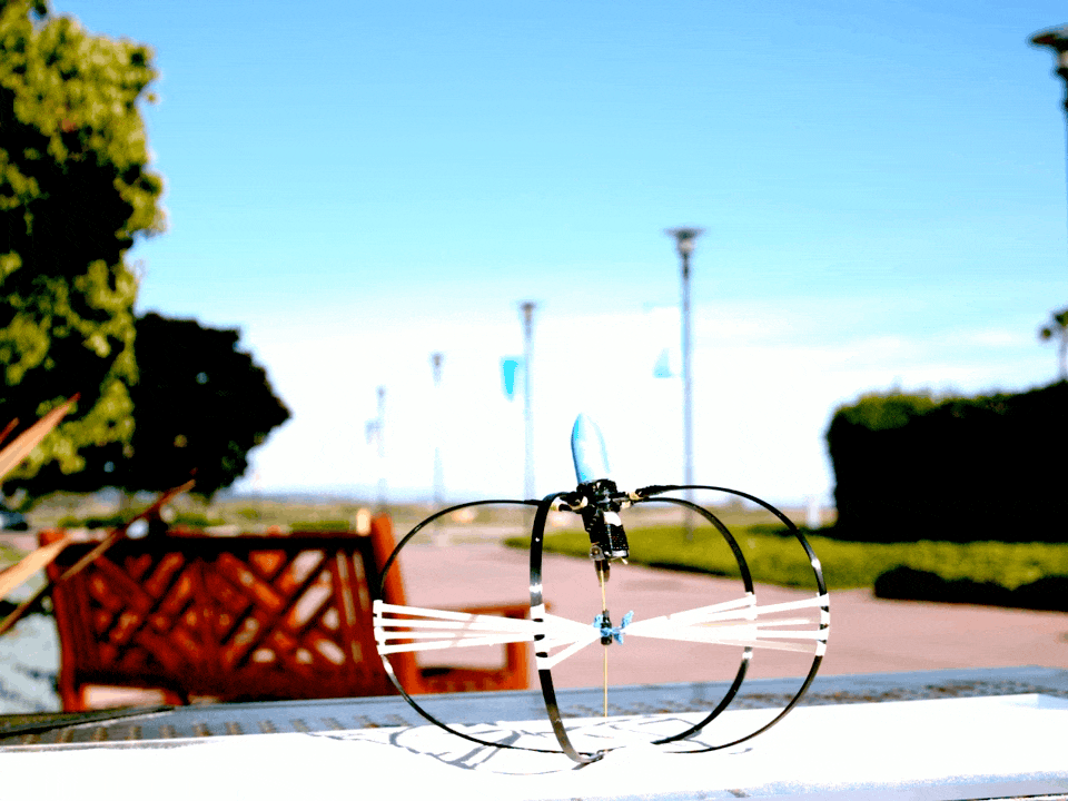 ,对于这类机器人来说还是比较重的。它几乎完全由充当弹簧的碳纤维弓和蓄力的橡皮筋制成。机器人的中心包括一个电机、电池和一个连接机器人顶部与底部的绳索的闩锁装置。