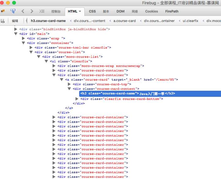 #response是爬虫请求获取的网页资源,下面的代码可以帮助我们获得每一个课程div