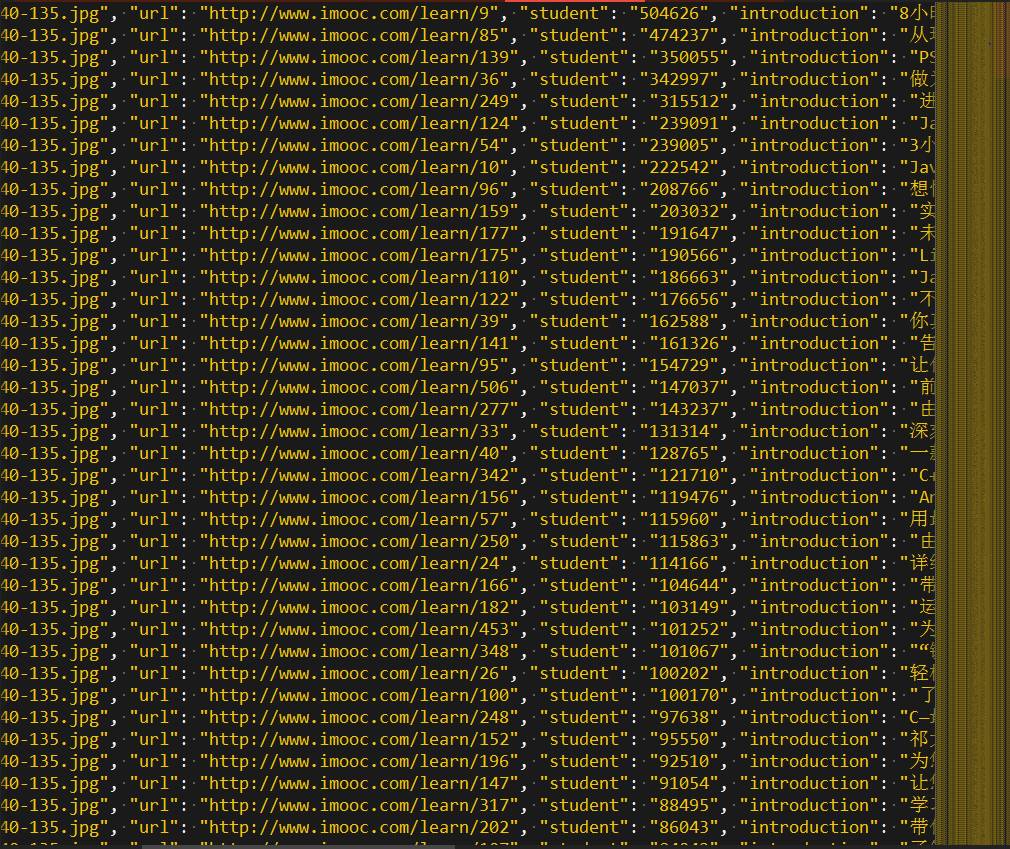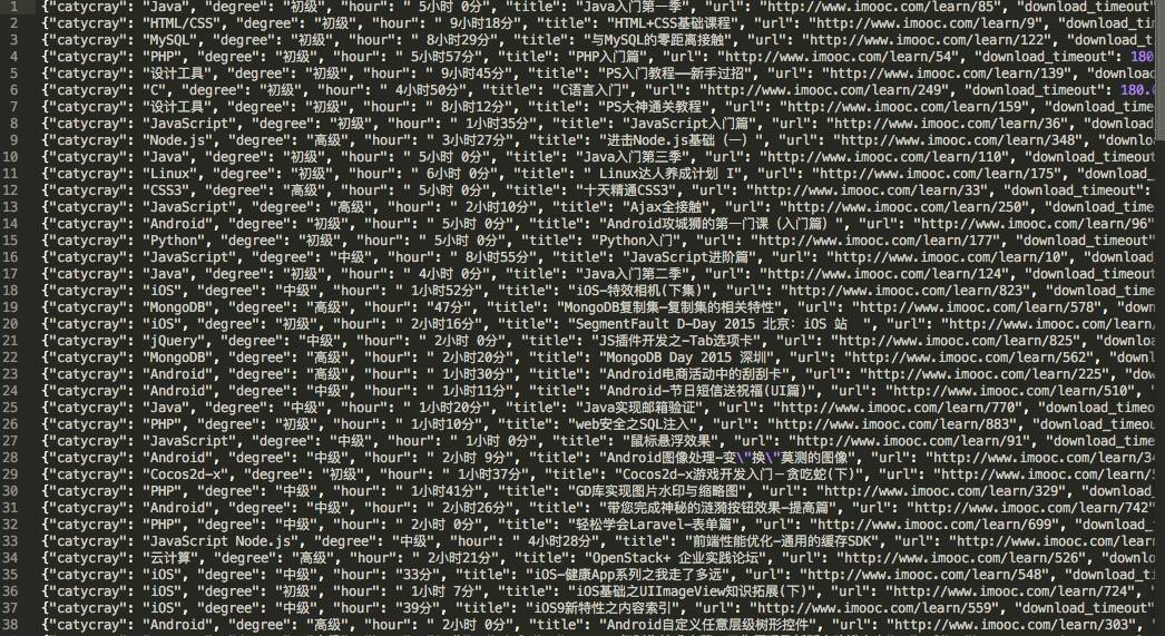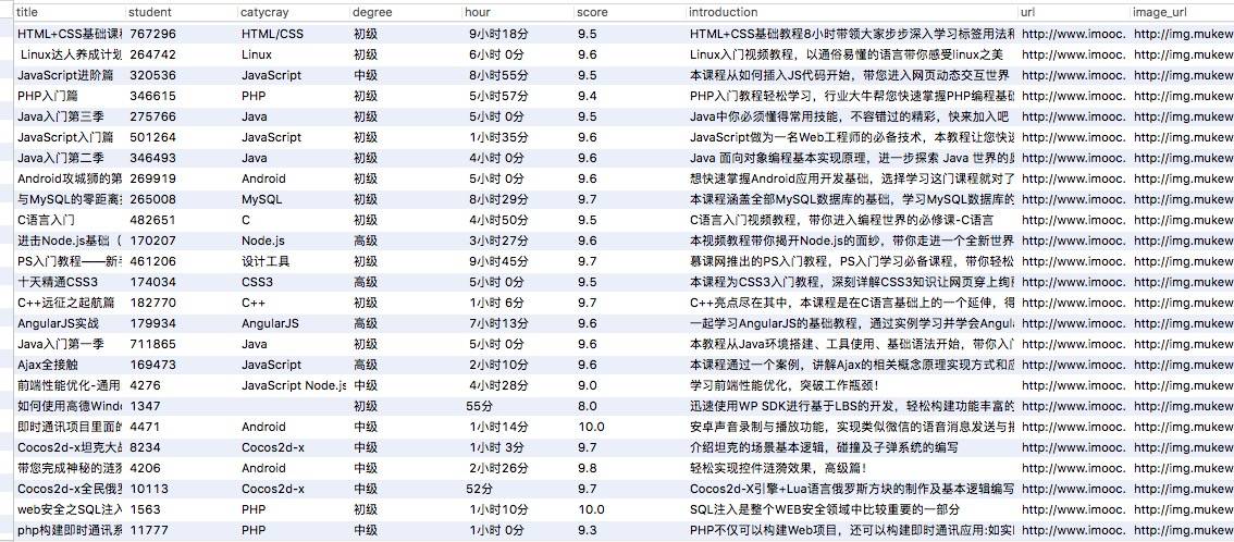 上面的处理结束后我们就成功的抓取了慕课网的全部课程信息了。