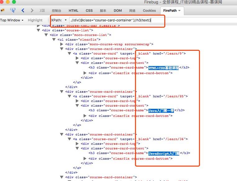 双斜杠 // 表示获取所有的指定元素,比如上面第一句就是在esponse内容里取所有的指定class属性值为"course-card-container"的div标签