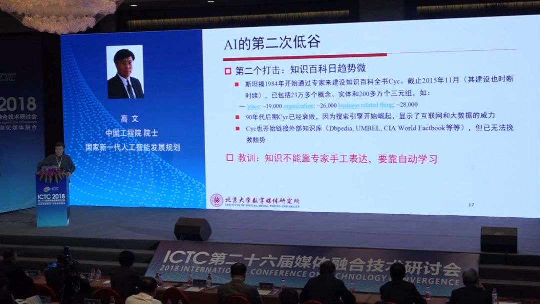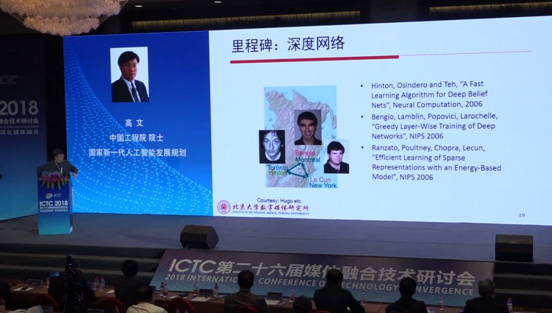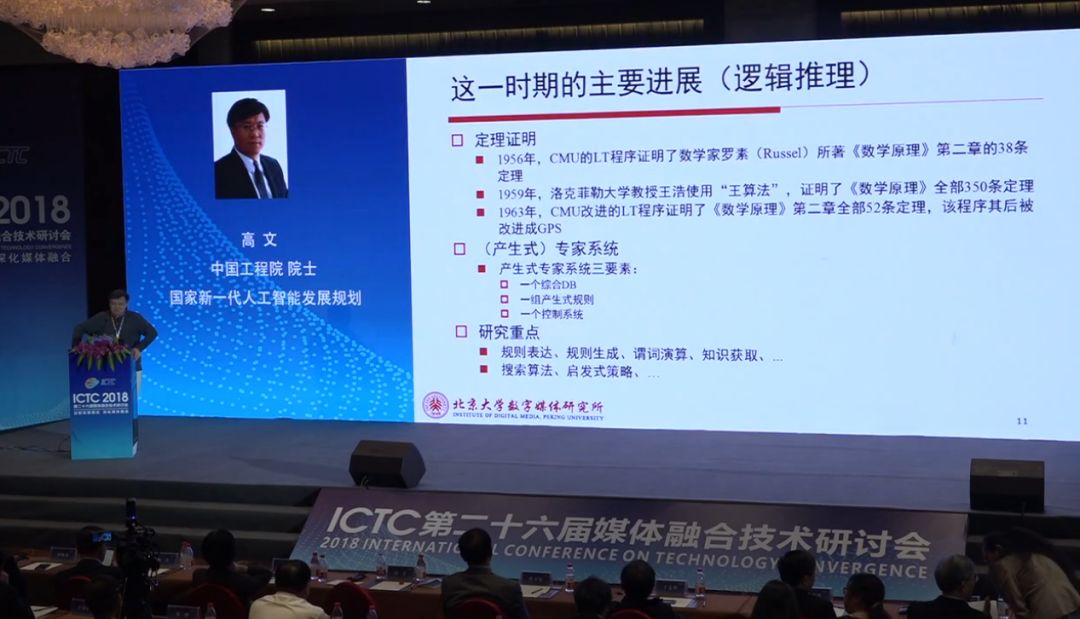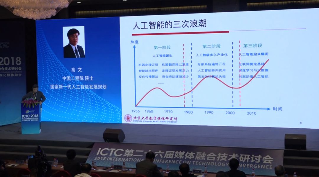 在会上,中国工程院院士高文院士发表演讲,人工智能的历史自1956年开始,至今已经62年。当时在Dartmouth大学进行了为期10个月的研讨,10位人工智能学者共同首次确定了人工智能的概念,让机器能像人类一样认知、思考并学习,这是首次采用计算机模拟人的智能。