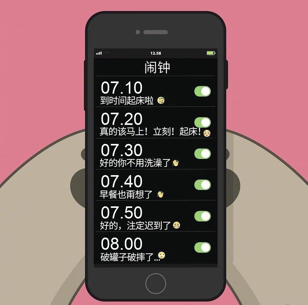 在闹铃猛烈轰炸下,终于挣扎地掀开了被子,2分钟穿好衣服,3分钟洗漱,穿上鞋子夺门而出!